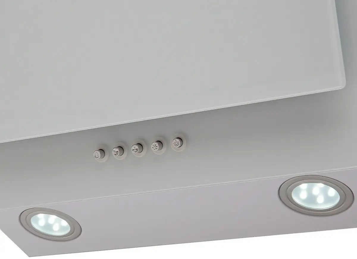 конструкция наклонная, монтаж настенный, ширина 60 см, управление механическое/кнопочное, производительность мотора 700 м×/ч, цвет белый