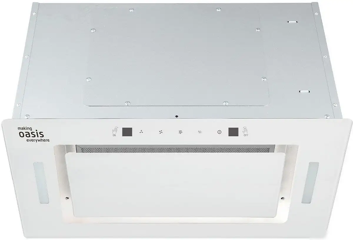 конструкция скрытая, монтаж для встраивания, ширина 52 см, управление сенсорное/жестами, производительность мотора 1050 м×/ч, цвет белый