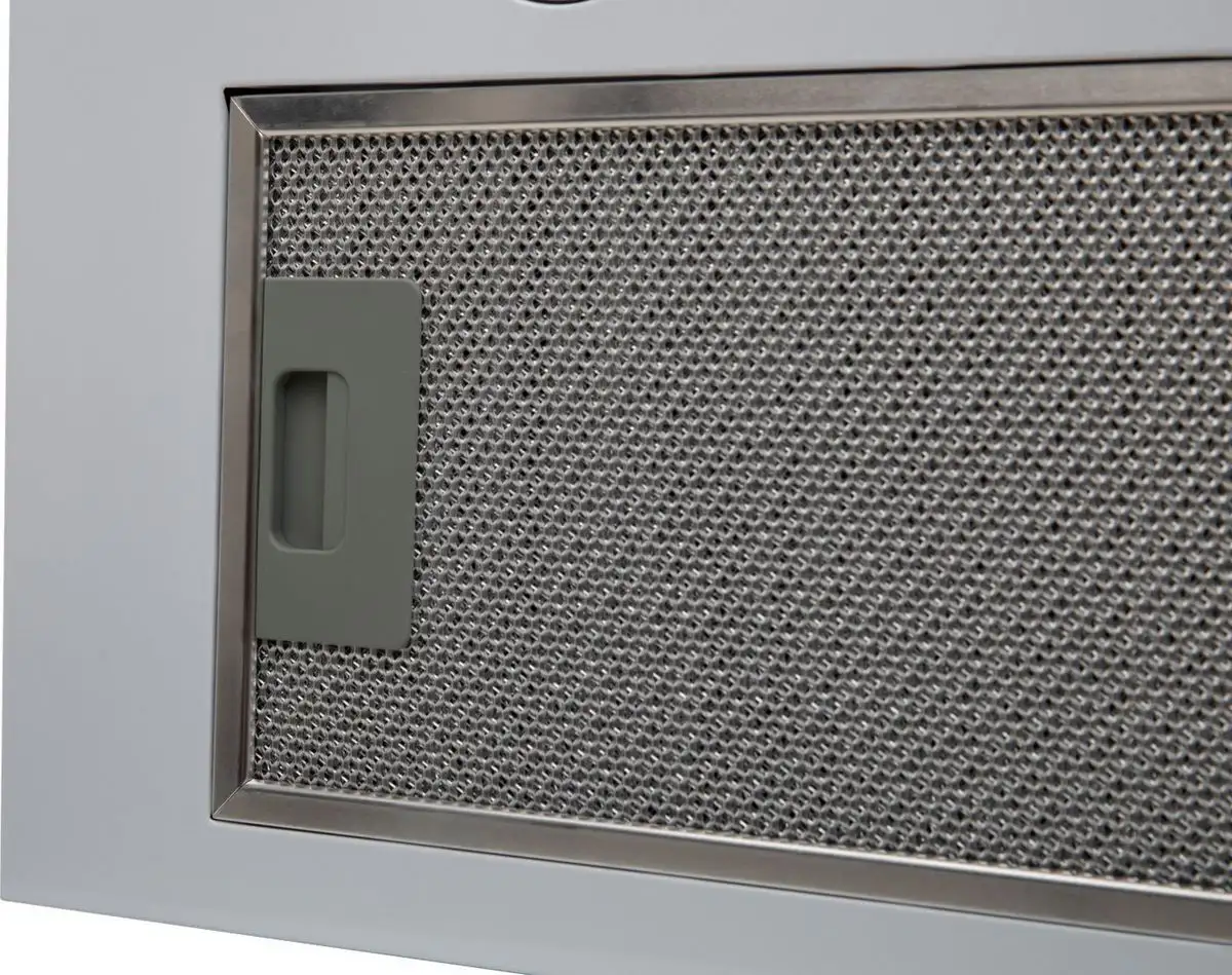 конструкция скрытая, монтаж для встраивания, ширина 70 см, управление механическое/кнопочное, производительность мотора 1000 м×/ч, цвет белый