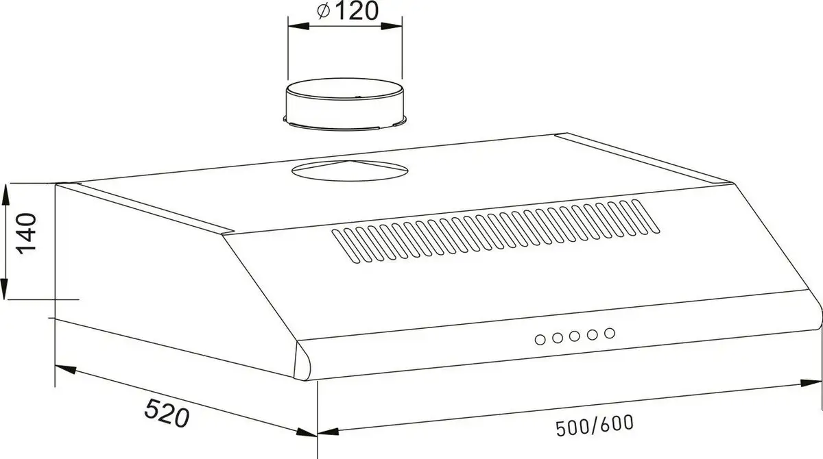 конструкция плоская, монтаж настенный, ширина 50 см, управление механическое/кнопочное, производительность мотора 450 м×/ч, цвет бежевый
