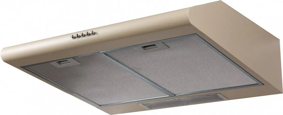 конструкция плоская, монтаж настенный, ширина 60 см, управление механическое/кнопочное, производительность мотора 350 м×/ч, цвет бежевый