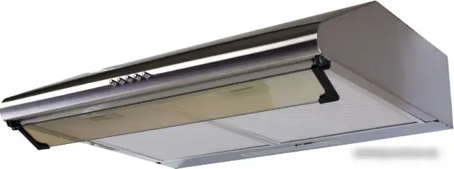 конструкция плоская, монтаж настенный, ширина 60 см, управление механическое/кнопочное, производительность мотора 350 м3/ч, цвет нержавеющая сталь