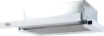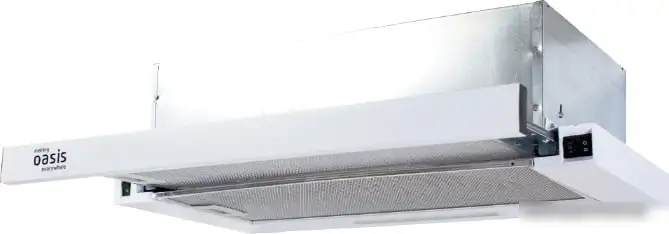 Кухонная вытяжка Oasis UV-50W (F) имеет классический дизайн и подходит для встроенного монтажа. Она работает на двух моторах общей мощностью 200 Вт, что позволяет быстро очищать воздух в кухне — до 500 кубических метров в час. Вытяжка оснащена двумя алюминиевыми жироулавливающими фильтрами, которые легко снимаются и очищаются. Управление осуществляется механическими кнопками, а уровень шума не превышает 42 дБ — это делает её тихой во время работы. В комплект входит монтажный набор и переходной фланец с антивозвратным клапаном. Внутри есть два светильника мощностью 50 Вт, которые хорошо освещают рабочую зону. Её размеры позволяют легко установить в разные виды кухонных гарнитуров, а корпус выполнен из прочной стали.