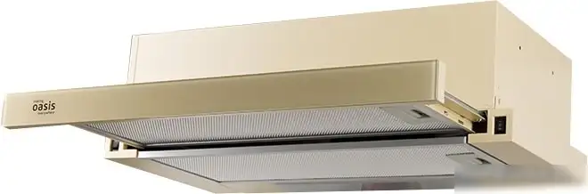 конструкция телескопическая, монтаж для встраивания, ширина 60 см, управление механическое/кнопочное, производительность мотора 500 м3/ч, цвет бежевый