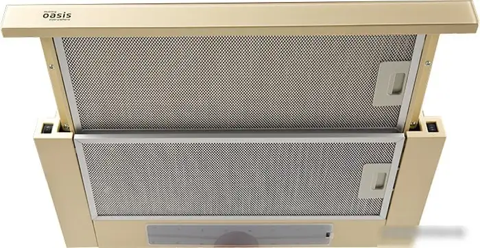 Кухонная вытяжка Oasis UV-60IG (F) выполнена в классическом стиле и предназначена для встраивания. Она имеет телескопическую конструкцию, которая легко адаптируется под размер вашей кухни. Управление осуществляется механическими кнопками, что делает использование простым и удобным. В вытяжке есть жироулавливающие алюминиевые фильтры, которые помогают сохранять чистоту воздуха. Освещение благодаря двум галогенным лампам мощностью 50 Вт обеспечивает хорошую видимость на варочной поверхности. Мощность мотора составляет 200 Вт, а максимальная производительность достигает 500 кубометров в час. Вытяжка работает тихо — не более 42 дБ, а также имеет два уровня скорости для более точной настройки.