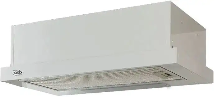 конструкция телескопическая, монтаж для встраивания, ширина 60 см, управление механическое/слайдерное, производительность мотора 500 м×/ч, цвет белый