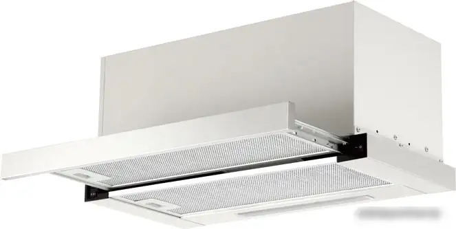 конструкция телескопическая, монтаж для встраивания, ширина 60 см, управление механическое/кнопочное, производительность мотора 1000 м3/ч, цвет нержавеющая сталь