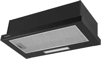 конструкция телескопическая, монтаж для встраивания, ширина 50 см, управление механическое/слайдерное, производительность мотора 520 м×/ч, цвет черный