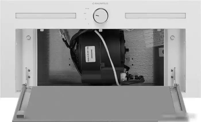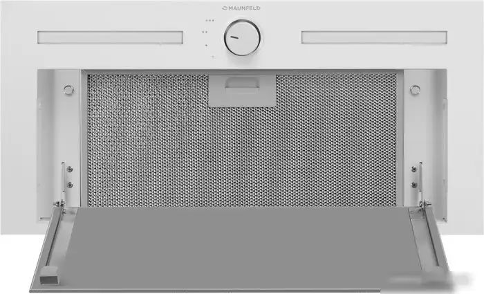 конструкция скрытая, монтаж для встраивания, ширина 59.8 см, управление механическое/поворотный переключатель, производительность мотора 1000 м×/ч, цвет белый