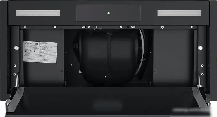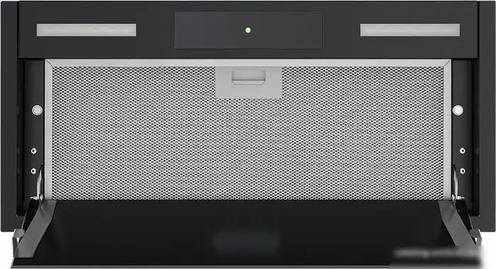 конструкция скрытая, монтаж для встраивания, ширина 59.7 см, управление жестами, производительность мотора 1050 м3/ч, цвет черный