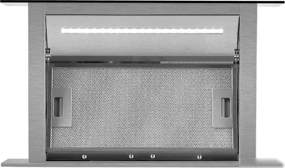 конструкция скрытая, монтаж для встраивания в столешницу, ширина 58 см, управление сенсорное, производительность мотора 1154 м×/ч, цвет нержавеющая сталь/черный