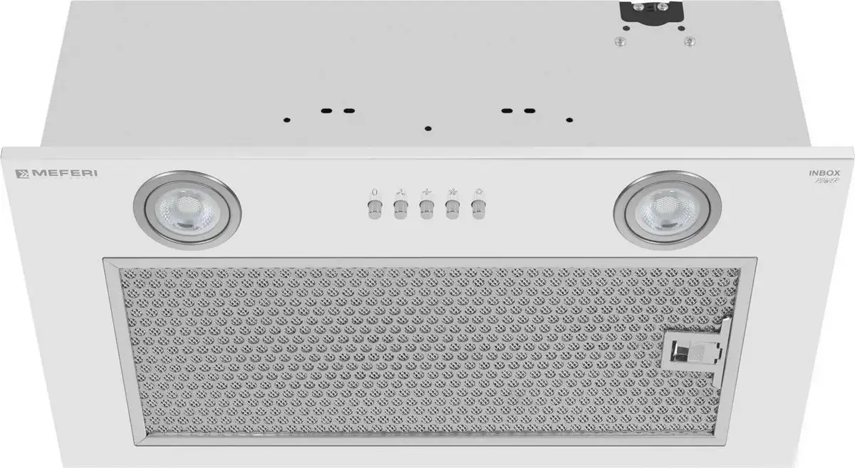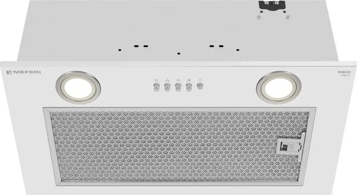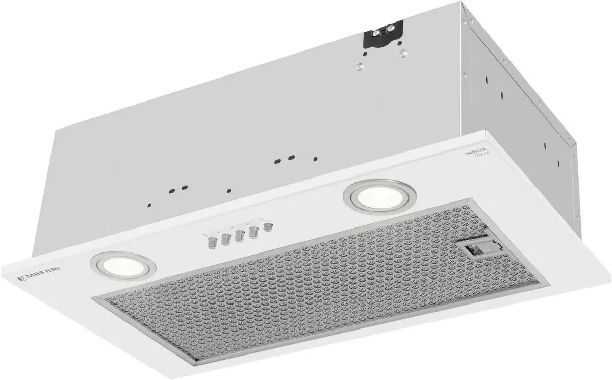 Кухонная вытяжка Meferi INBOX52WH Power выполнена в классическом белом стиле и легко скрывается в кухонной мебели. Она включает один мощный мотор мощностью 120 Вт, который обеспечивает хорошую вентиляцию с производительностью до 900 кубометров в час. Вытяжка управляется механической кнопкой и оснащена двумя светодиодными лампами по 4 Вт, создающими хорошее освещение для готовки. Она имеет один алюминиевый жироулавливающий фильтр для очистки воздуха, а также включает в комплект угольный фильтр для устранения запахов. Также у устройства есть три скорости работы, что позволяет регулировать мощность по необходимости. Вытяжка обладает компактными размерами (Ширина 52 см), небольшим весом (4,5 кг) и легко монтируется.