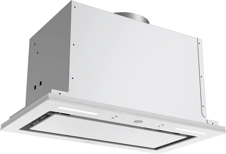 конструкция скрытая, монтаж для встраивания, ширина 52 см, управление сенсорное, производительность мотора 900 м×/ч, цвет белый