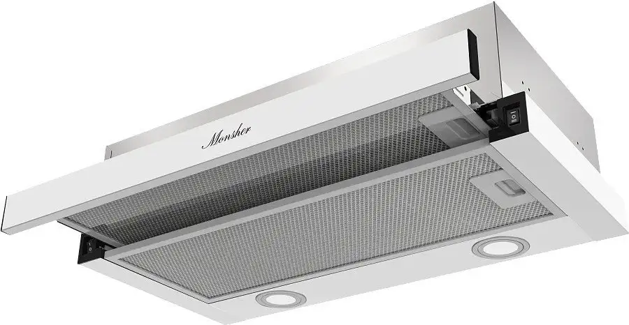 Кухонная вытяжка Monsher Laura 60 Blanc имеет классический стиль и предназначена для встраивания. Она работает на один мотор мощностью 80 Вт и обеспечивает максимальную производительность до 550 м³/ч, эффективно очищая воздух на кухне. Вытяжка оснащена двумя алюминиевыми жироуловительными фильтрами, которые легко моются и улучшают работу устройства. Управление осуществляется механическими кнопками, что делает его простым и понятным. Встроенное двухламповое светодиодное освещение ярко освещает рабочую зону и потребляет мало электроэнергии. Максимальный уровень шума составляет 47 дБ, что обеспечивает тихую работу. Размеры устройства – ширина около 60 см, глубина 30 см и высота 16 см, что удобно для большинства кухонь. Вытяжка имеет возможность регулировки скорости вентиляции по двум уровням, позволяя настроить работу под разные условия. Благодаря продуманной конструкции и высокой эффективности, она помогает поддерживать чистый и свежий воздух на кухне.