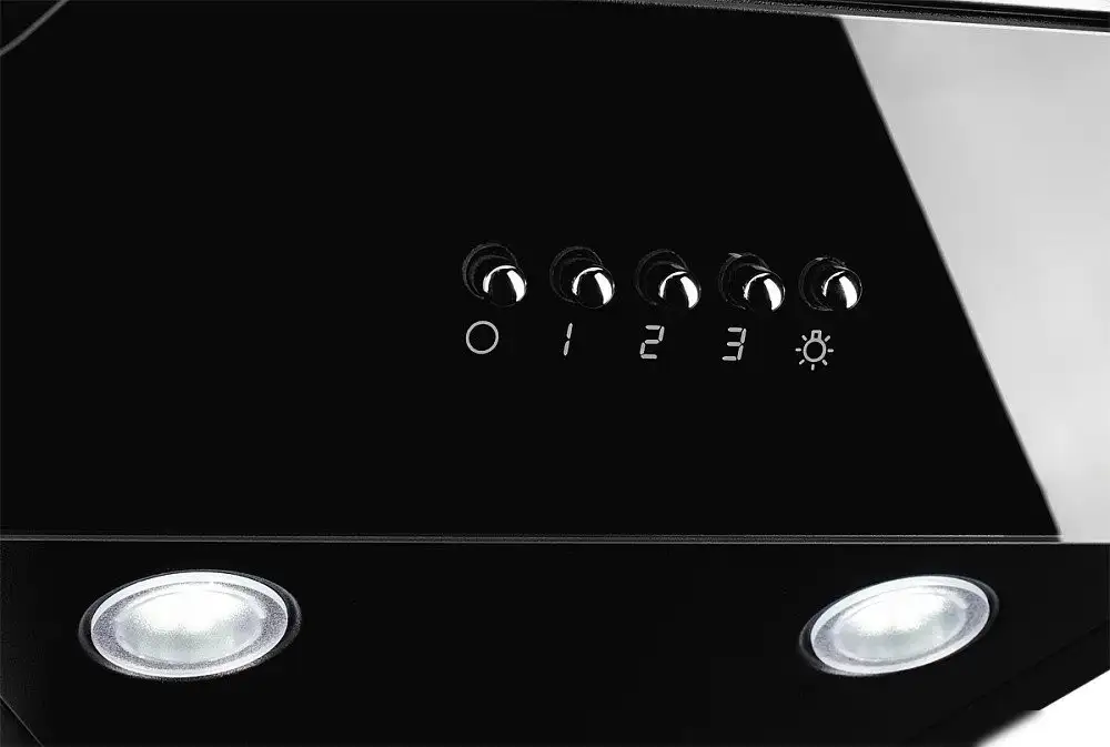 конструкция наклонная, монтаж настенный, ширина 59.5 см, управление механическое/кнопочное, производительность мотора 1100 м×/ч, цвет черный