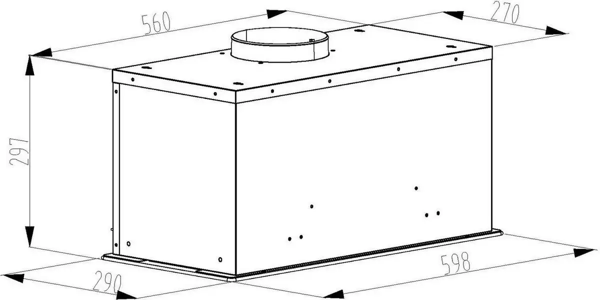 конструкция скрытая, монтаж для встраивания, ширина 59.8 см, управление сенсорное/дистанционное, производительность мотора 1200 м×/ч, цвет черный