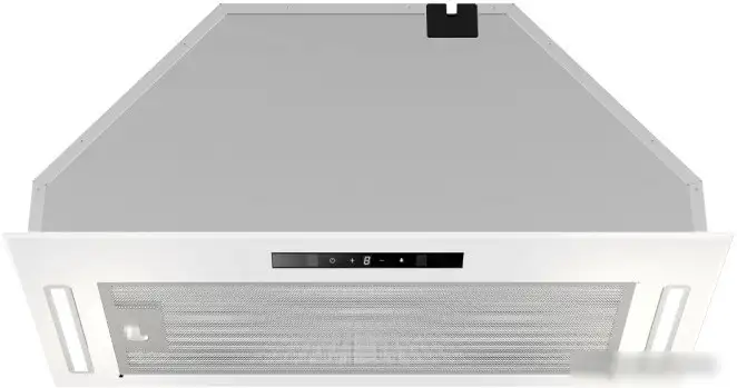 конструкция скрытая, монтаж для встраивания, ширина 59.8 см, управление сенсорное/жестами, производительность мотора 1020 м×/ч, цвет белый