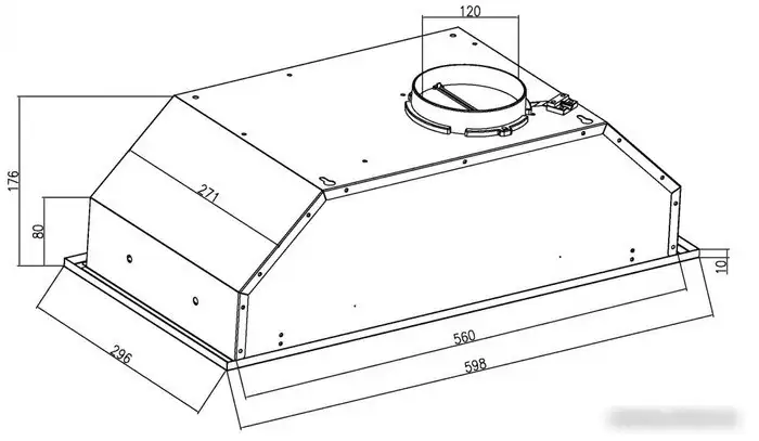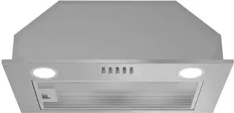 конструкция скрытая, монтаж для встраивания, ширина 59.8 см, управление механическое/кнопочное, производительность мотора 750 м×/ч, цвет нержавеющая сталь