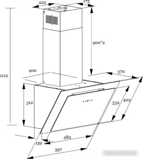 конструкция наклонная, монтаж настенный, ширина 59.7 см, управление сенсорное, производительность мотора 1020 м×/ч, цвет черный