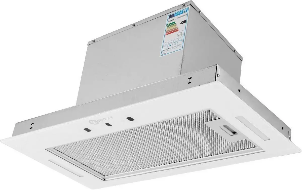 Кухонная вытяжка Schtoff Trend 60 White имеет современный дизайн и легко вписывается в любой интерьер. Она устанавливается встроенным способом и управляется сенсорными жестами, что делает использование простым и удобным. Вытяжка оснащена светодиодным освещением из двух ламп мощностью по 3 Вт, которое хорошо освещает рабочую зону. Благодаря периметральному воздухопоглощению и жироулавливающему алюминиевому фильтру, она эффективно очищает воздух на кухне. Модель включает один мощный мотор мощностью 100 Вт, который создает производительность до 1300 кубометров в час при минимальном уровне шума в 39 дБ. Для удобства есть светодиодный экран с четырьмя скоростями и таймер автоотключения. В комплект входят монтажные крепления и переходник для подключения к гофре. Вытяжка работает эффективно благодаря классу энергоэффективности A++, что помогает снизить расходы на электроэнергию.