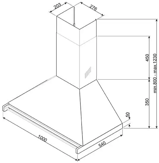 конструкция купольная, монтаж настенный, ширина 100 см, управление поворотный переключатель, производительность вытяжки 639 м3/ч, цвет черный