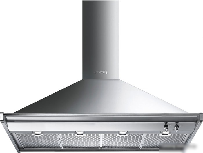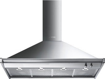 Кухонная вытяжка Smeg KD120HXE выполнена в современном стиле из нержавеющей стали и имеет купольную конструкцию, которая легко устанавливается на стену. Она оснащена светодиодным освещением, которое обеспечивает яркое и экономичное освещение рабочей зоны. Вытяжка обладает высокой производительностью: в нормальном режиме она отвлекает до 606 куб. м/ч, а в интенсивном — до 777 куб. м/ч, что помогает быстро и эффективно справляться с запахами и дымом. Управление осуществляется поворотным переключателем, есть три скорости и режим интенсивной работы. В комплекте идут четыре стальных жироулавливающих фильтра, которые легко очищают воздух. Мощность мотора составляет 274 Вт, а уровень шума в режиме максимальной работы не превышает 67 дБ, что делает работу относительно тихой. Вытяжка отличается хорошей энергоэффективностью класса A+,красиво сочетается с любой кухней и долговечно служит благодаря качественным материалам. Ее размеры позволяют встроить устройство в стандартную кухонную конструкцию, а диаметр воздуховода составляет 150 мм. Яркое освещение, надежное управление и высокая производительность делают эту вытяжку отличным выбором для кухни.