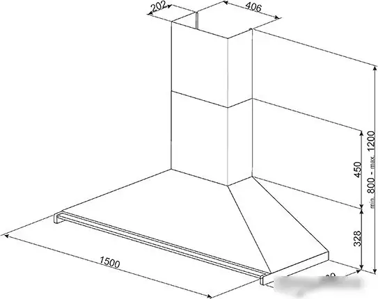 конструкция купольная, монтаж настенный, ширина 150 см, управление поворотный переключатель, производительность вытяжки 626 м3/ч, цвет нержавеющая сталь