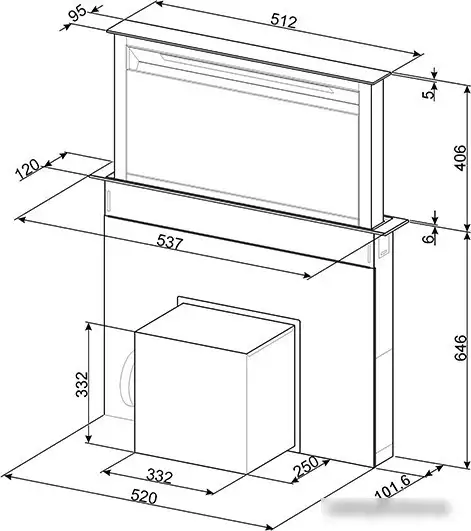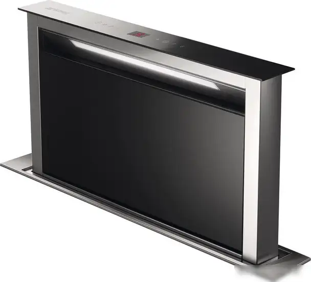 конструкция телескопическая, монтаж для встраивания, ширина 53.7 см, управление сенсорное, производительность вытяжки 375 м3/ч, цвет нержавеющая сталь/черный
