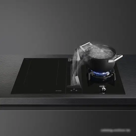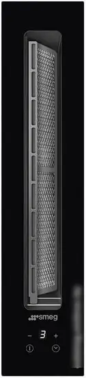 Кухонная вытяжка Smeg KDH12WLD выполнена в современном стиле и предназначена для встройки в столешницу. Её черный корпус из стекла легко впишется в любой интерьер кухни. Вытяжка обладает высокой производительностью: до 470 кубометров в час в стандартном режиме и до 550 — в интенсивном. Она оснащена жироулавливающими алюминиевыми фильтрами, которые легко очищать, а индикатор загрязнения помогает контролировать их состояние. Управление осуществляется сенсорным светодиодным экраном, есть таймер автоотключения и несколько скоростей работы, включительно с интенсивным режимом. Мощность мотора — 145 Вт, а уровень шума — до 69 дБ. Вытяжка работает на энергоэффективность класса A+, расходуя всего 37 кВт·ч в год. Она проста в монтаже и хорошо вписывается в современную кухню благодаря компактным габаритам.