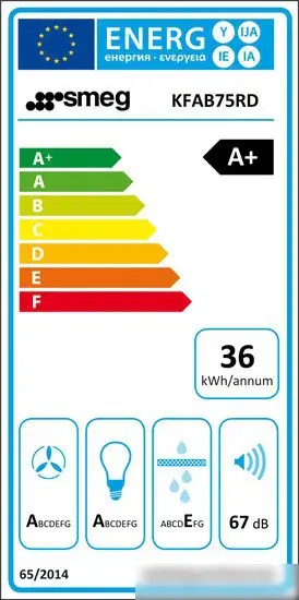 Кухонная вытяжка Smeg KFAB75RD выполнена в стиле ретро 50-х годов и имеет наклонную конструкцию для удобства использования. Она устанавливается на стену и управляется электронными кнопками, что делает управление простым и быстрым. Оснащена светодиодным освещением из двух ламп мощностью 2 Вт, которое обеспечивает яркое освещение рабочей зоны. Максимальная производительность отвода воздуха достигает 649 куб. м/ч, а в интенсивном режиме — 797 куб. м/ч, что эффективно удаляет запахи и пары. Конструкция периметрального воздухопоглощения помогает лучше очищать воздух, а жироулавливающие фильтры из алюминия легко моются. В комплекте есть угольный фильтр для циркуляции воздуха без отвода. Вытяжка оборудована одним мощным мотором мощностью 280 Вт и тремя скоростями, что позволяет выбрать оптимальный режим работы. Индикатор загрязнения фильтров и таймер автоотключения помогают следить за техническим состоянием устройства и экономить энергию. Уровень шума в максимальном режиме составляет 72 дБ, а в минимальном — 50 дБ. Общие габариты: ширина 75 см, глубина 61,6 см, высота 64,4 см.