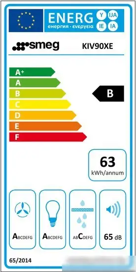Кухонная вытяжка Smeg KIV90XE выполнена в классическом Т-образном дизайне из нержавеющей стали и стекла. Она эффективно очищает воздух, обеспечивая максимальную производительность отвода до 535 куб. м/ч и в интенсивном режиме до 762 куб. м/ч. Вытяжка управляется с помощью электронных кнопок, есть индикатор загрязнения фильтров и 3 уровня скорости работы с дополнительным режимом интенсивной вентиляции. Освещение осуществляется светодиодными лампами мощностью 4 Вт, которые хорошо освещают рабочую зону. Встроенные алюминиевые жироулавливающие фильтры легко очищаются и защищают кухню от жира и запахов. Благодаря одному мотору мощностью 275 Вт устройство работает относительно тихо: минимальный уровень шума составляет 52 дБ, максимум — 64 дБ. Энергоэффективность устройства высокая, расход составляет около 63 кВт·ч в год. Габариты вытяжки позволяют удобно установить её над островной или классической кухней.