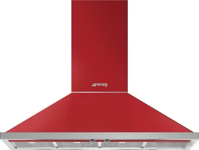 конструкция купольная, монтаж настенный, ширина 119.55 см, управление поворотный переключатель, производительность вытяжки 606 м3/ч, цвет красный/нержавеющая сталь