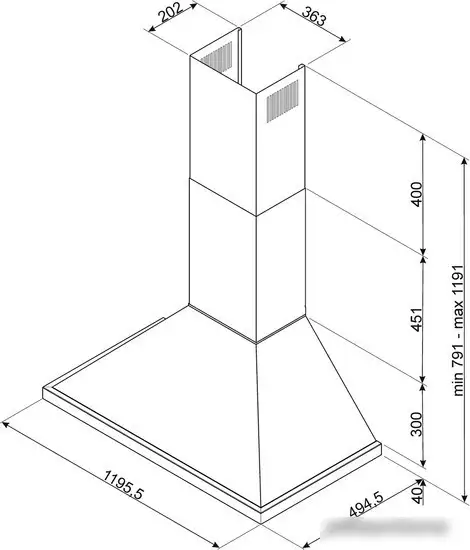 конструкция купольная, монтаж настенный, ширина 119.55 см, управление поворотный переключатель, производительность вытяжки 606 м3/ч, цвет белый/нержавеющая сталь