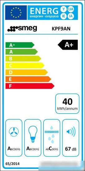 Кухонная вытяжка Smeg KPF9AN имеет классический стиль и купольную конструкцию, которая легко крепится на стену. Она работает на одном моторе мощностью 275 Вт, обеспечивая эффективную вентиляцию с максимальной производительностью отвода до 630 куб. м/ч и в интенсивном режиме до 781 куб. м/ч. Управление осуществляется механическим поворотным переключателем, что просто в использовании. Вытяжка оснащена светодиодным освещением с двумя лампами по 2 Вт, которое плавно регулируется по яркости. Жироулавливающие фильтры из алюминия, в количестве три, помогают поддерживать чистоту воздуха. Эта модель отличается низким уровнем шума — до 67 дБ, что не мешает во время работы. В конструкции предусмотрен периметральный поглотитель воздуха, что повышает эффективность. Управление тише и легко, а энергоэффективность класса A+ помогает экономить электроэнергию. Габариты: ширина – 89,6 см, глубина – 49,5 см, высота — от 79,2 до 122,7 см.