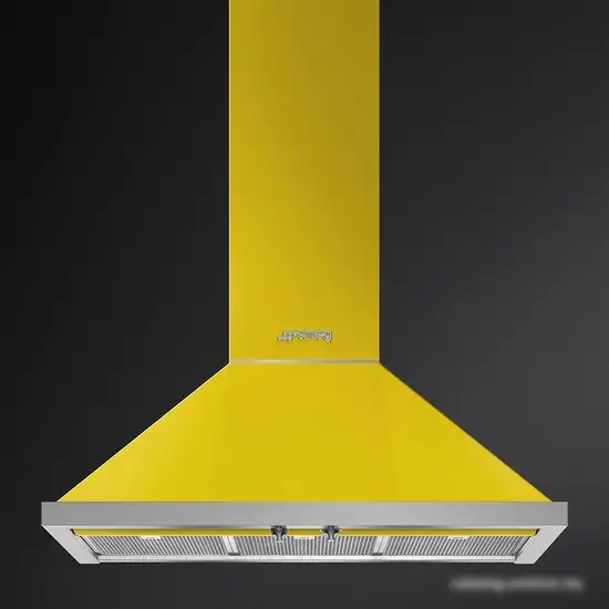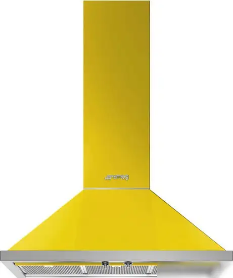 конструкция купольная, монтаж настенный, ширина 89.6 см, управление механическое/поворотный переключатель, производительность вытяжки 630 м3/ч, цвет желтый