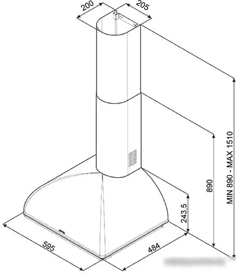 конструкция купольная, монтаж настенный, ширина 59.5 см, управление поворотный переключатель, производительность вытяжки 522 м3/ч, цвет антрацит