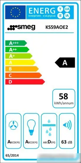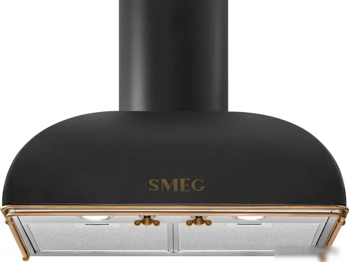 Кухонная вытяжка Smeg KS59AOE2 выполнена в стильном ретро-естетике с купольной конструкцией и расположена на стене. Она оснащена двумя светодиодными лампами мощностью 2 Вт, которые хорошо освещают рабочую зону. Устройство управляется поворотным переключателем и имеет три скорости работы, а в интенсивном режиме оно эффективно быстро очищает воздух. Максимальная производительность отвода достигает 522 кубометров в час, а в режиме интенсивной работы — 754 кубометра в час, что подходит для больших кухонь. Вытяжка оборудована жироулавливающими алюминиевыми фильтрами, обеспечивающими надежную защиту от загрязнений. Мощность мотора составляет 275 Вт, а уровень шума в рабочем режиме не превышает 63 дБ, что делает работу комфортной. Энергоэффективность устройства соответствует классу A, а годовой расход электроэнергии — всего 58 кВт·ч. Благодаря компактным размерам — шириной 59,5 см и глубиной 48,4 см — она легко впишется в любой интерьер кухни.