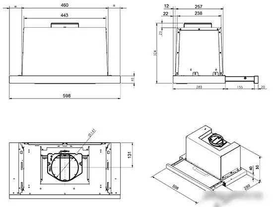 конструкция телескопическая, монтаж для встраивания, ширина 59.8 см, управление слайдерное, производительность вытяжки 581 м3/ч, цвет нержавеющая сталь