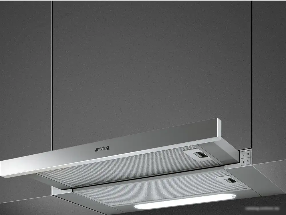 Кухонная вытяжка Smeg KSET62E выполнена в классическом стиле и легко вписывается в любой кухонный интерьер. Она устанавливается встроенным способом и управляется кнопками. Вытяжка сделана из нержавеющей стали и оснащена двумя светодиодными светильниками, которые хорошо освещают поверхность варочной панели. Максимальная производительность по отводу воздуха достигает 304 куб. м/ч, что помогает быстро очищать кухню от запахов и запахов. Устройство оснащено одним мотором мощностью 115 Вт и тремя скоростями для удобства настройки. В комплекте идут два алюминиевых жироулавливающих фильтра, которые легко моются. Шум во время работы колеблется от 46 до 62 дБ, что обеспечивает комфортное использование. В вытяжке есть индикатор загрязнения фильтров, что помогает вовремя их очищать. Размеры позволяют установить её за шириной 59,8 см, а вес всего 6 кг делает монтаж проще.