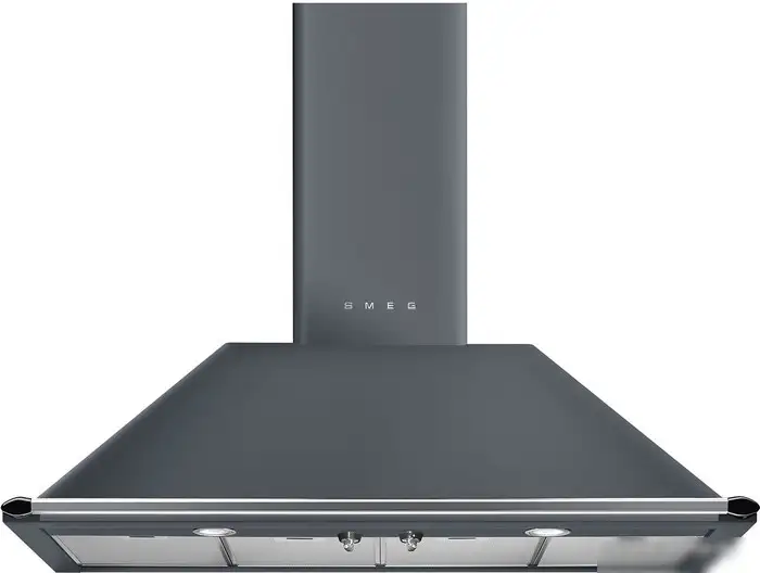 Кухонная вытяжка Smeg KT110GRE имеет стильный ретро-дизайн и купольную конструкцию, которая легко впишется в любой интерьер. Она монтируется на стену и управляется поворотным переключателем, что удобно в использовании. Вытяжка оснащена двумя светодиодными лампами мощностью 4 Вт, которые хорошо освещают рабочую зону. Максимальная производительность отвода воздуха достигает 554 куб. м/ч, а в интенсивном режиме — 784 куб. м/ч, что позволяет быстро убрать запахи и дым. В конструкции есть жироулавливающий алюминиевый фильтр, который легко очищать. Вытяжка работает на одном моторе мощностью 275 Вт и имеет три скорости работы. Она работает достаточно тихо — максимум 63 дБ при максимальной скорости, что обеспечивает комфорт во время использования. Также устройство обладает высоким уровнем энергоэффективности и хорошей циркуляцией воздуха. Размеры вытяжки — 110 см в ширину, 47,6 см в глубину и 90–115 см в высоту.