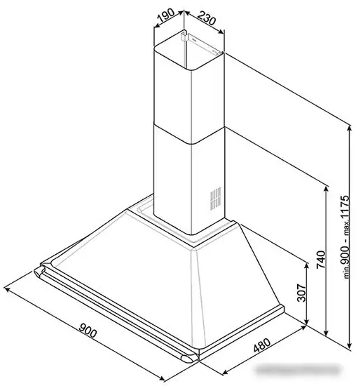 конструкция купольная, монтаж настенный, ширина 90 см, управление поворотный переключатель, производительность вытяжки 567 м3/ч, производительность мотора 820 м3/ч, цвет оранжевый