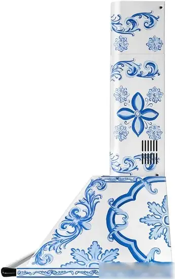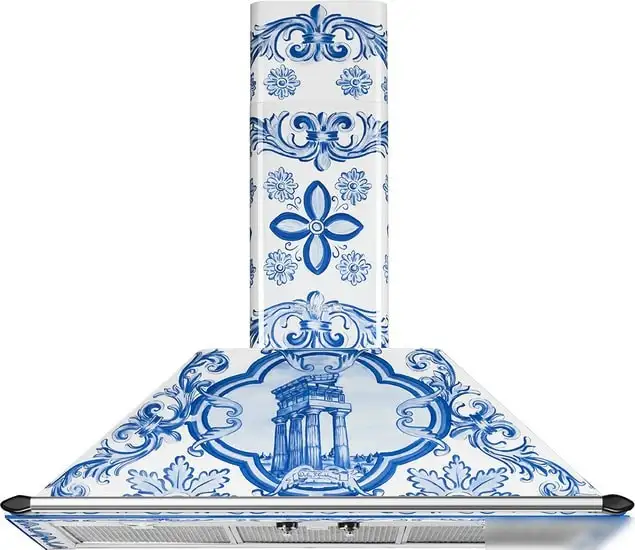 конструкция купольная, монтаж настенный, ширина 90 см, управление поворотный переключатель, производительность вытяжки 567 м3/ч, производительность мотора 820 м3/ч, цвет белый/синий