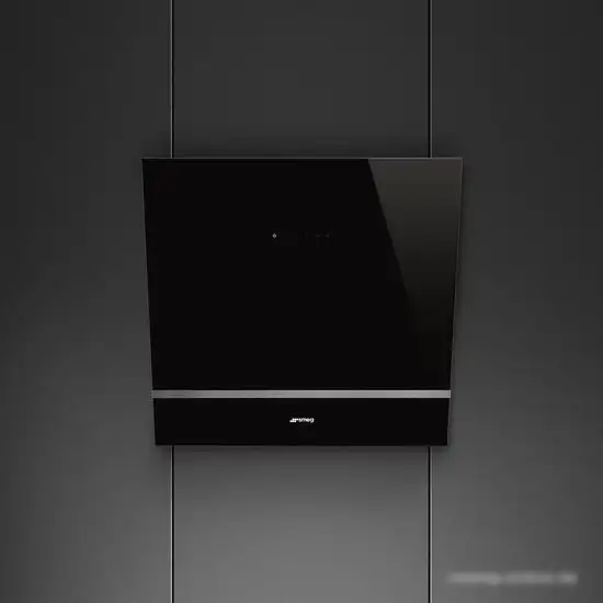 конструкция наклонная, монтаж настенный, ширина 59.5 см, управление сенсорное, производительность вытяжки 420 м3/ч, цвет черный