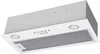 конструкция скрытая, монтаж для встраивания, ширина 44.5 см, управление механическое/кнопочное, производительность вытяжки 305 м3/ч, производительность мотора 900 м3/ч, цвет белый
