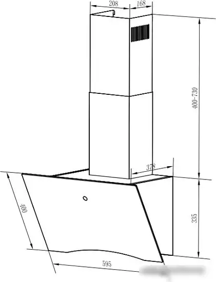конструкция наклонная, монтаж настенный, ширина 59.5 см, управление сенсорное, производительность мотора 1000 м3/ч, цвет черный