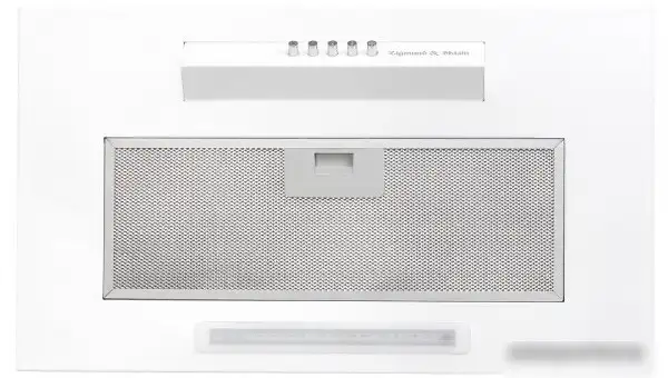 конструкция скрытая, монтаж для встраивания, ширина 52 см, управление механическое/кнопочное, производительность мотора 1010 м×/ч, цвет белый