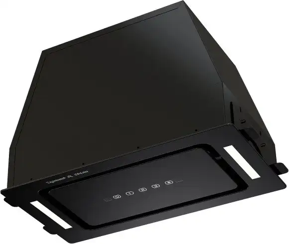 конструкция скрытая, монтаж для встраивания, ширина 52 см, управление сенсорное/жестами, производительность вытяжки 1100 м×/ч, цвет черный