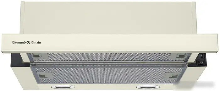 конструкция телескопическая, монтаж настенный, ширина 60 см, управление механическое/слайдерное, производительность мотора 700 м×/ч, цвет бежевый