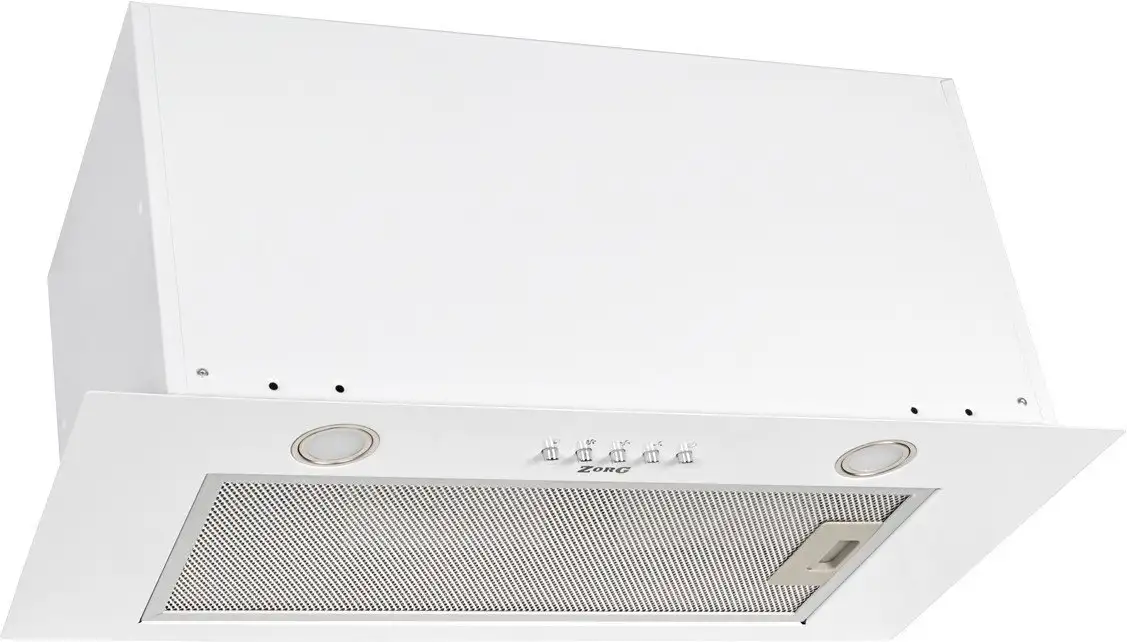 конструкция скрытая, монтаж для встраивания, ширина 59.8 см, управление механическое/кнопочное, производительность мотора 1260 м×/ч, цвет белый