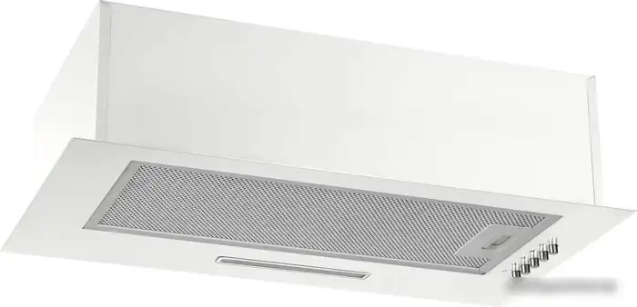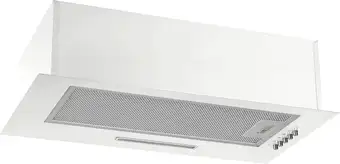 конструкция скрытая, монтаж для встраивания, ширина 52 см, управление механическое/кнопочное, производительность мотора 850 м×/ч, цвет белый